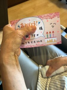78歳のお誕生日を迎えられたご利用者様のお祝いをしました。