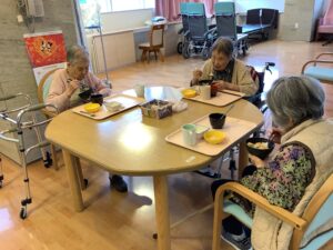 食後には「お腹いっぱいだね」と満足そうにお話され、食堂には和やかな雰囲気が広がっていました。