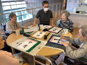 川ユニット 習字活動をしました 2025年9月29日 最終更新日時 : 2025年9月27日 kagayaki 余暇時間に習字を行いました。 皆様と一緒に書くお題を考え、『十月』『新米』『秋』を選んで書きました。 来月も習字を行う予定ですので、次回のお題も皆様と一緒に考えたいと思います。